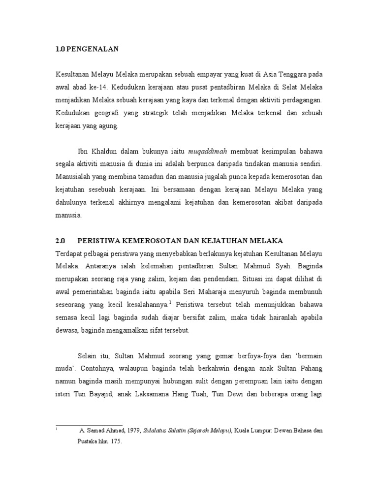 Atas sebab ini, sultan terakhir kesultanan melayu melaka ialah sultan mahmud shah. Memahami dan mengetahui sejarah kesultanan melayu melaka daripada permulaan, kegemilangan dan kemerosotan. Walaupun kesultanan malaka sangat kuat dipengaruhi oleh agama islam namun dalam menjalankan pemerintahan, kerajaan ini tidak menerapkan pemerintahan islam sepenuhnya. Berikut ini adalah pembahasan mengenai rumusan masalah makalah dan cara membuat rumusan masalah. Majlis sambutan budi, lambaian kasih.